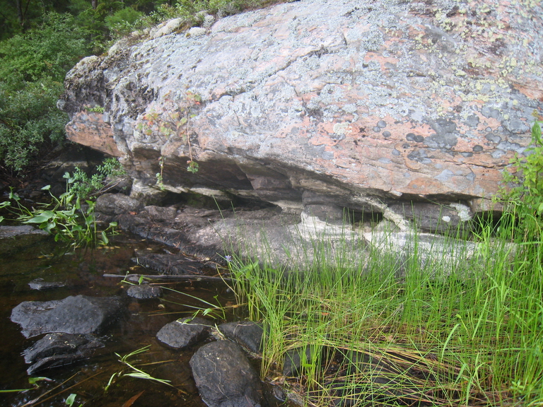 We stopped at an island campsite on Burnt Island Lake for lunch. While we were there, the skies cleared and we had a wonderful lunch sitting in the sun on a large rock. It made us forget about the foul weather we had endured. Fortunately, we couldn't see the western skies or it would have put a damper on our enjoyment.